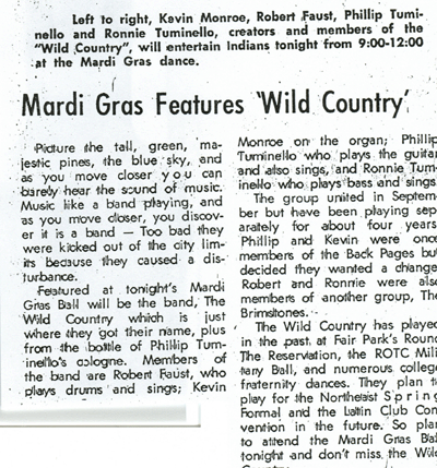 Robert Faust: After reading Janice Oden's flashbacks I felt I must add a few of my own. I to remember those VDP's at Dairy Queen, and I remember sharing quite a few of them with Janice. And who found those photos of the Brimstones? Surely someone can come up with a picture of Wild Country. After all, we did play at the Mardi Gras!