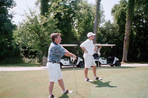 Greg Watkins is my niece's husband. Greg sponsored Golf Towels and other goodies from Pfizer. My niece and he just had twin girls, Mollie and Megan on June 20th, 2002. Boy, did he need a day of Golf...